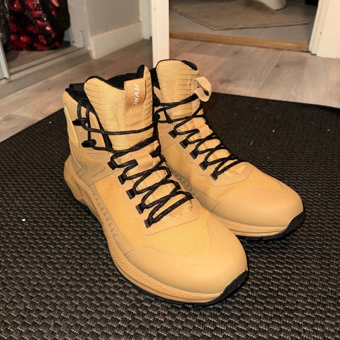Vuosi sitten tilatut revolutionrace vedenpitävät dijon värissä olevat kengät. Koko 44.