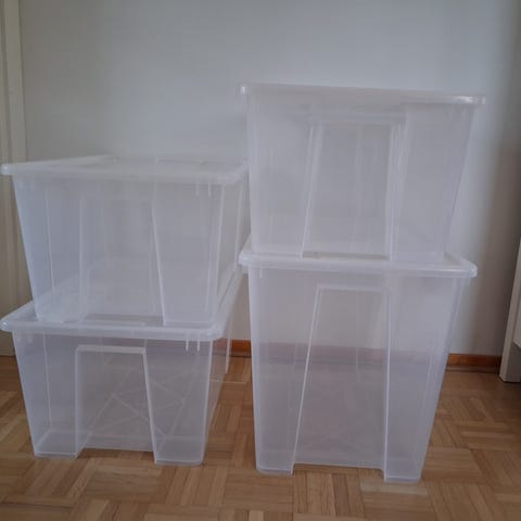 Hyväkuntoiset ja ehjät, käytetyt laatikot 22 litraa. 39x28x28 cm. Pientä käytönjälkeä on mutta siistit edelleen.