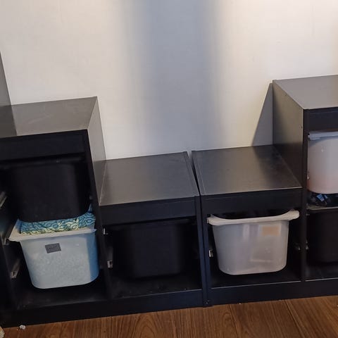 IKEA lastenkaappit. Sopii esimerkiksi lastenhuoneen säilytykseen leluille, kirjoille ja vaatteille. Ovien yläreunassa ja pinnoissa voi olla käytön jälkiä, kuten kuvissa näkyy. Yksi ovi ei mee kiinni mut varmaan säätämäällä ovia menee.