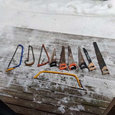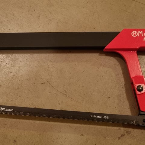 Ilmoituksessa on käsisaha sekä rautasaha useilla vaihdettavilla terillä.