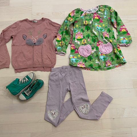 Sisältää kuvassa näkyvät vaatteet: mm Collegepaitoja, ulkohousut, hanskat