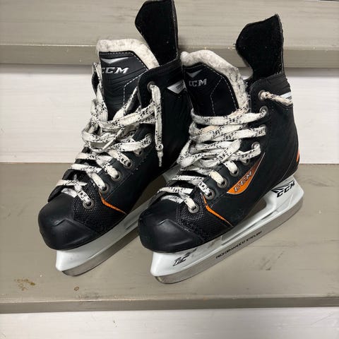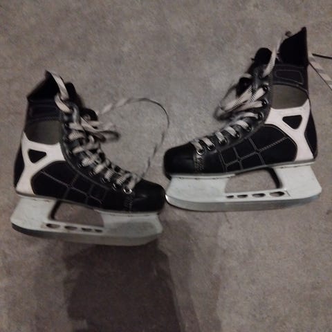 CCM jääkiekkoluistimet lapsille, koko 39. Väri musta-valkoinen. Soveltuvat jääkiekkoon ja muuhun luisteluun. Terät metallia, päällinen synteettistä materiaalia ja nauhakiinnitys edessä.