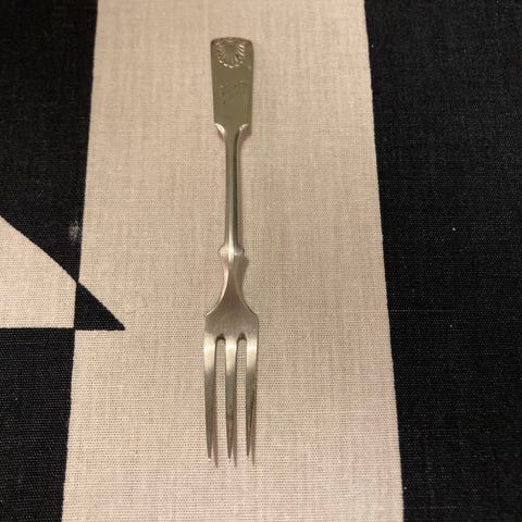 Hopeaa, leimat löytyy, erikoinen, voisi olla leivoshaarukka