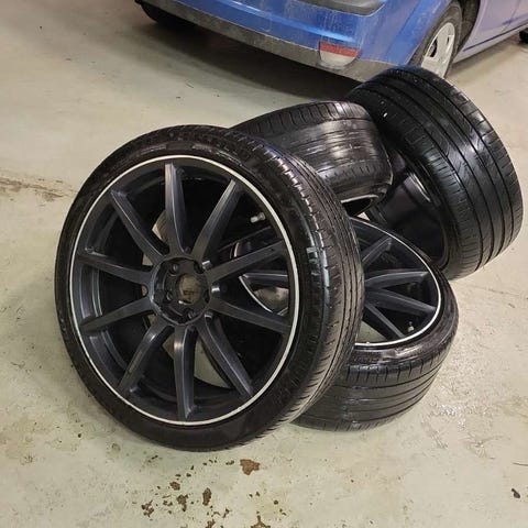 Ronalin valmistamat kolmeosaiset brabus vanteet. Etuset 8,5 et 35 ja takana 9,5 et 35. Kuvista näkee kunnon aika hyvin eli muutamia jälkiä vuosien saatossa syntynyt. Päällä ajettavat kesärenkaat ja mersuun sopivia soviterenkaita mukaan kolme ja neljäs jos löytyy jostain varaston pohjalta.