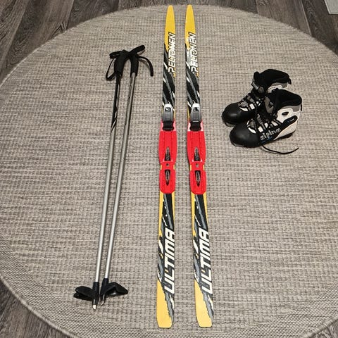 Monot kokoa 32. Sukset 130cm. Sauvat 95cm