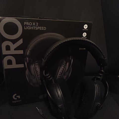 myydään täysin uudenveroiset langattomat Logitech G Pro X Lightspeed kuulokkeet, Mukaan kuulokkeet, uudet korvatyynyt, vastaanotin ja laturi.