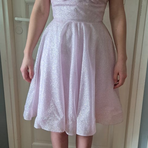 Kaksi kertaa käytetty (rippijuhlat ja ysien tanssit) rippimekko. Ostettu uutena Zazabellasta tammikuussa 2025. Mekon väri on nude. Itse kuvailisin sitä ehkä enemmän kultaiseksi kuin nudeksi. Mekko on glitterinen, eli kiiltää hienosti luonnonvalossa.