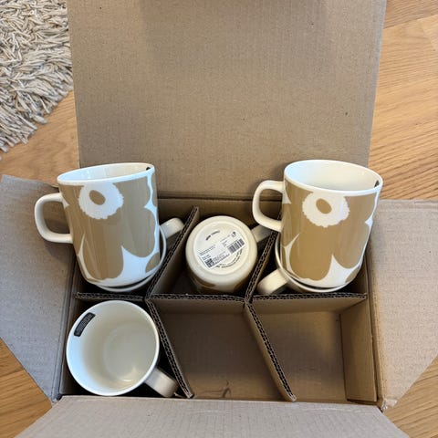 Marimekko Unikko muki. Beige-valkoinen kukkakuosi, materiaali keramiikka/posliini. Muki soveltuu juomien tarjoiluun arkeen ja kattauksiin. Pohjamerkintöjen mukaan astia kestää astianpesukoneen, uunin, mikron ja pakastimen. Muki vetää 5 dl, joten harvinaisuus sinällään. Nouto sovitusti, postitus vastaanottajan laskuun. Minulla ei ole Toridiiliä.