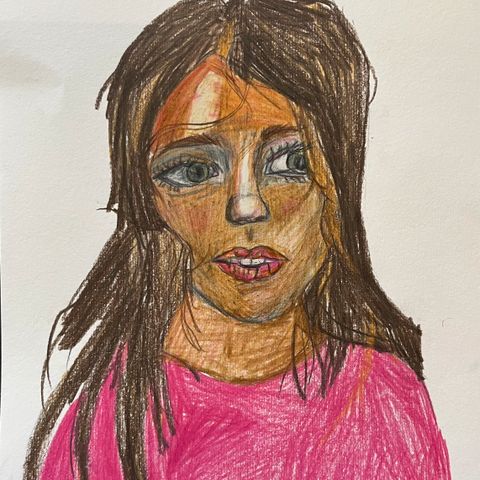 Käsintehty muotokuva piirros pastelleilla, realismi paperille. Kuvassa on tytön kasvokuva violettia taustaa vasten, taustalla sydänaiheita. Alareunassa taiteilijan nimikirjoitus ja vuosiluku. Sopii esimerkiksi seinälle kehystettäväksi tai lahjaksi taiteen ystävälle.