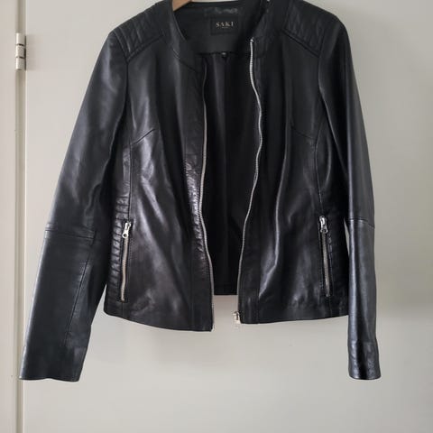 Valkoinen nahkatakki punaisin yksityiskohdin. Vain pari kertaa pidetty. Tyköistuva malli. Kokolapussa 40, mutta parempi 38 koolle.
