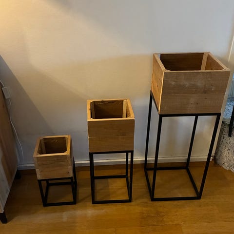 Metallinen musta kukkaruukku ja erillinen jalusta sisäkäyttöön. Ruukku on sylinterin muotoinen ja asetetaan kevyen metallisen ristikkojalustan päälle. Sopii erikokoisille viherkasveille ja koristekasveille. Yksivärinen mattamusta pinta. Jalusta nostaa ruukun irti lattiasta ja helpottaa kasvin sijoittelua huoneessa.