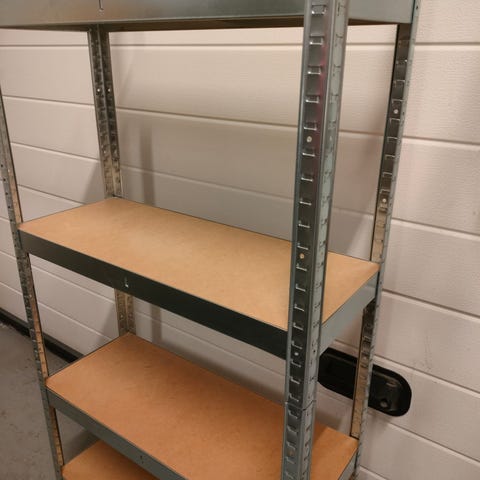 Jämäkkä hylly. Säädettävät tassut. Kantavuudesta en tiedä, mutta ollut täynnä auton jarrulevyjä ja hyvin kestänyt. Mitat: