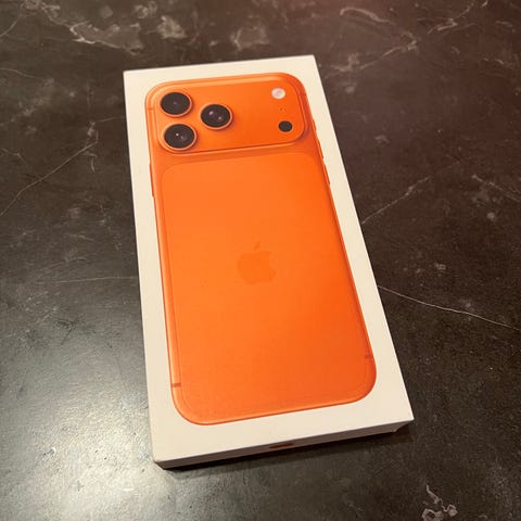 Iphone 17 Pro Max -puhelin, USB-C latausjohto, Sim -työkalu, pikaopas, myyntipakkaus, alkuperäinen kuitti.