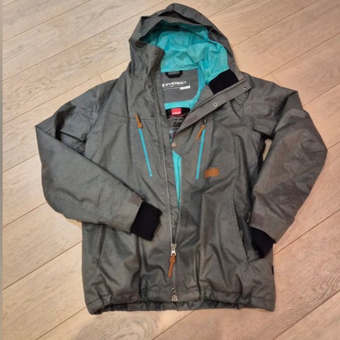 Everest naisten laskettelutakki. Hyvä kuntoinen. Koko 40. Vaaleassa osassa helmassa tullut tahraa hiihtohissistä ks kuva 4. En ole erityisemmin koittanut poistaa, normi pesussa ei irronnut. Käyttöön ei vaikuta.