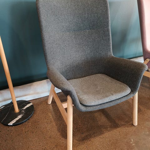 Hyväkuntoinen Ikean Vedbo nojatuoli. Irrotettavat päälliset. Etummaisissa jaloissa kulumaa (ei yritetty puhdistaa/siistiä).