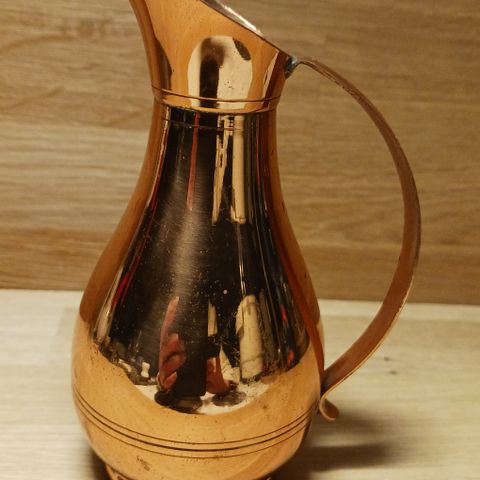 100v vanhat kuparisangot ovat olleet kovassa käytössä ja niissä on jälkiä, kuhmuja, klommoja ja patinaa. Suurin sanko on hiukan kallellaan. Pienimmän sangon nokan reunaa on paikkailtu ja korjailtu. Sisällä kaikissa on tummentumaa. Kuluneina ja käytettyinä näissä on juurikin oma viehätyksensä.
