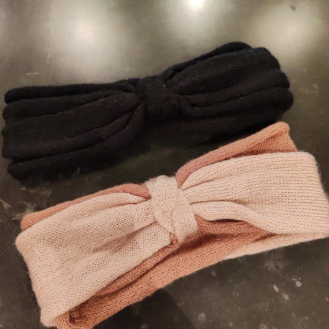 Käsinkudottu, pehmeä pääpanta, leveys 30 cm (60cm päänympärys) ja korkeus 18 cm, venyy jonkin verran