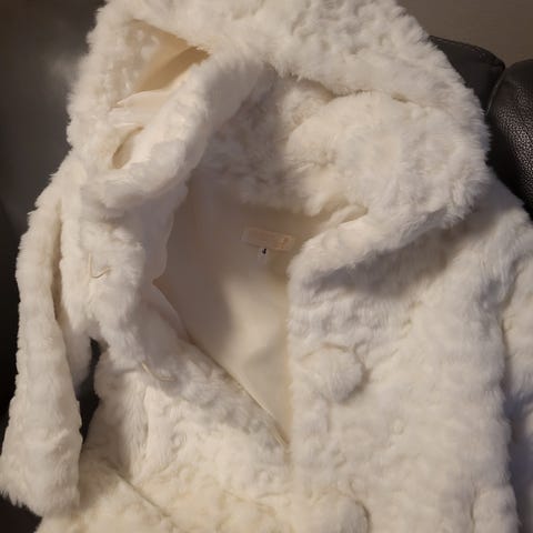 Koko selän pit. 77 cm, ympärys kainalon alta 115 cm, hartian lev. 50 cm ja hiha 46 cm.