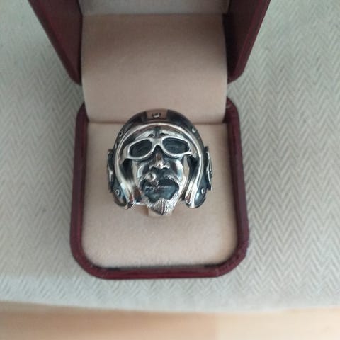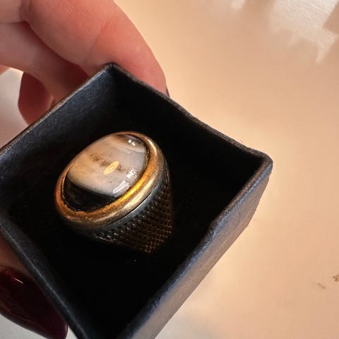 Myydään uusi hopeasormus jossa malakiittia ja lehtikultaa, koko 21mm