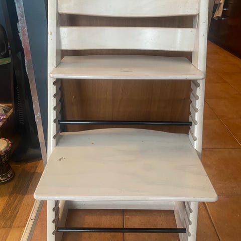 Stokke Tripp Trapp syöttötuoli. Puinen, ruskea syöttötuoli, jossa on säädettävä istuin- ja jalkataso. Tuoli on suunniteltu kasvamaan lapsen mukana ja soveltuu käytettäväksi ruokapöydän ääressä. Klassinen malli, jonka rakenne mahdollistaa lapselle ergonomisen istuma-asennon eri ikävaiheissa.
