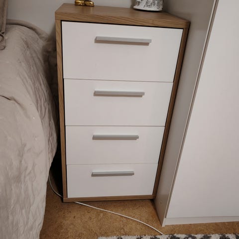 Myydään pitkään palvellut säilytyskaluste. Runko metallia, laatikot muovia.