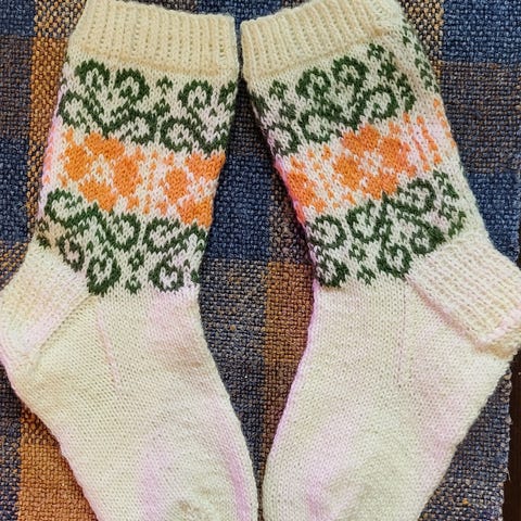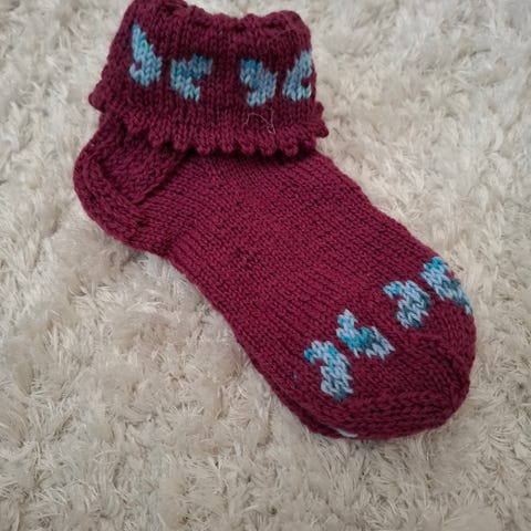 Ohuesta ja laadukkaasta Hjertegarn langasta (75 % villaa 25% polyamidia) neulotut polvipituiset perhossukat. Koko 37-38, varsi kantalapusta 37 cm ,terä 23,5 cm. Nouto tai postitus seurantakoodilla +6,90€.
