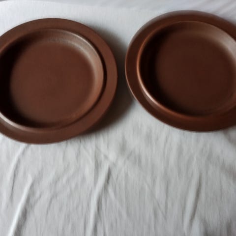 Kestävää kivitavaraa, ruskea lasite.