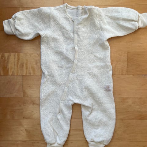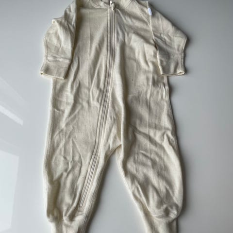 Kaikinpuolin siisti, ehjä ja nyppyyntymätön Janus merinovillahaalari kokoa 70, nepparikiinnitys.