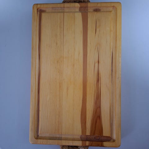 puinen leikkuulauta. Materiaalina massiivipuu, suorakulmainen muoto ja pyöristetyt kulmat. Soveltuu ruoan pilkkomiseen ja tarjoiluun keittiössä. Mitat näkyvät kuvissa mittanauhan avulla.