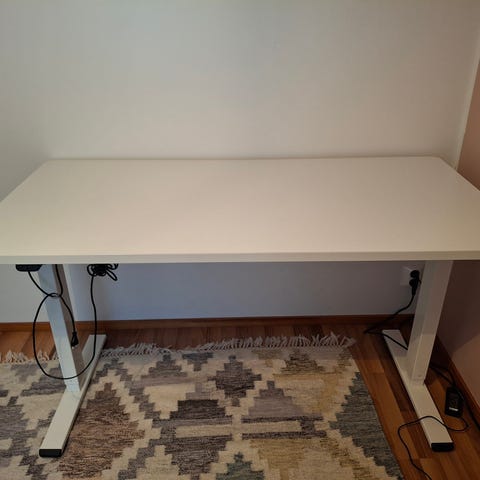 Kompaktin kokoinen sähköpöytä metallisella jalalla. Korkeus matalammalla tasolla 62cm ja ylimmällä 125cm