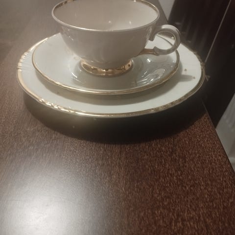 6 kpl kahvikuppeja+asetit+pullalautaset. Hyväkuntoiset ja siistit, myös kultaukset hyvässä kunnossa. Mieluiten nouto, mutta postitustakin voin harkita.