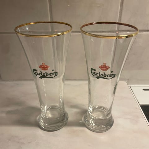 Annetaan kolme pientä jalallista lasia. Vain nouto.