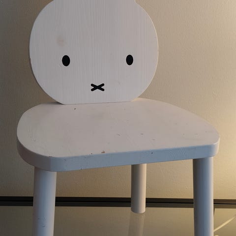 Sopii kivasti lastenhuoneen sisustuselementiksi pöydän kanssa tai leikkikeittiön pöydän kanssa. Me päädyimmekin toisiin tuoleihin, joten tämä jäi ylimääräiseksi. Ei ole ollut käytössä. Vastaa siis uutta. Tuolin saa näppärästi kasattua, joten lähetys onnistuu. Jalat vain pyöritetään paikalleen.
