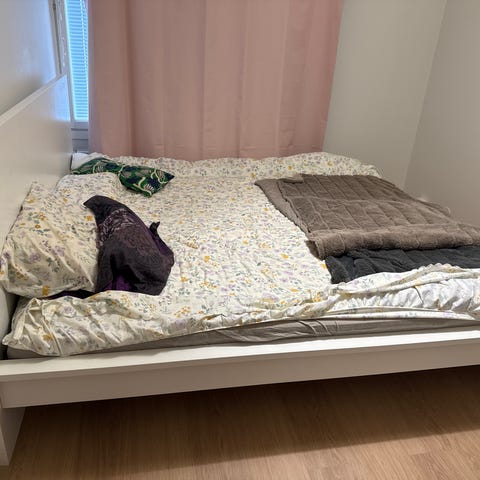 IKEA sänky säilytyslaatikoilla. Patjakoko 90x200 cm. Sängyssä on korkea pääty ja matalampi jalkopääty. Rungon alla on kaksi vetolaatikkoa säilytystä varten. Väri on vaalea puun sävy. Soveltuu yhden hengen sängyksi esimerkiksi makuuhuoneeseen, lastenhuoneeseen tai vierashuoneeseen. Patjan saa kaupanpäälle. Patjassa tahroja, mutta siitä saa päällisen irti. Pesu jää ostajalle. Koiratalous.