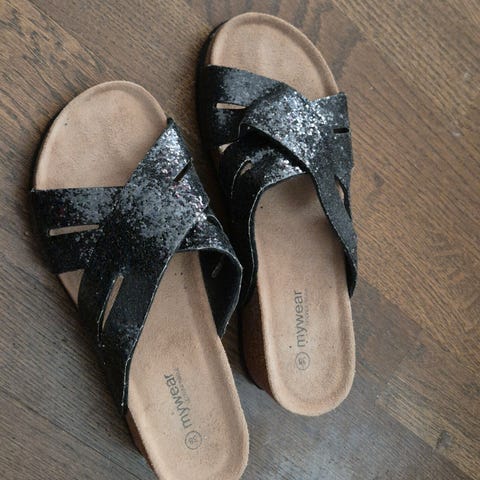 Mokkanahkaiset sandaalit. Väri tummansininen, hopea, musta. Koko 38. Merkki Naturläufer.