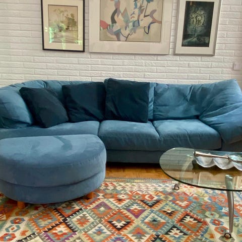 Laadukas sohva pestävällä ja kestävällä alcantara kankaalla. Sohva tosi hyväkuntoinen ja kaikki tyynyt ryhdissä ja hyvä istua.