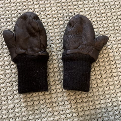 Kotimaiset lasten nahkarukkaset lämpimällä vuorella. Menee 1-2 vuotiaalle. Rukkaset on hyväkuntoiset.