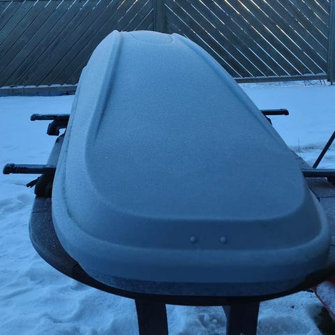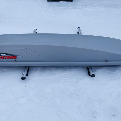 Thule jetbag suksiboksi ja taakkatelineet. Avaus ja sulkeminen toimii ok.