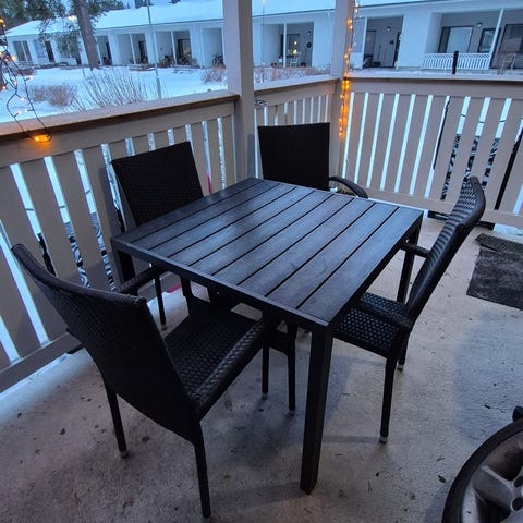 Myydään käyttämätön pihakäyttöön tarkoitettu ruokaryhmä (1 kpl pöytä ja 6 kpl tuoleja). Osittain vielä pakkausmuovit paikallaan.