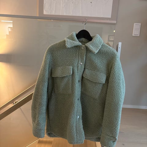 Harmaa pörröinen takki. Koko xs mutta on oversize ja itse olen käyttänyt M kokoisena. Edessä suuret taskut ja leveä kaulus. Sopii käytettäväksi viileämpiin säihin päällystakkina.