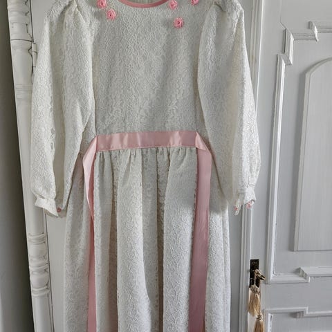 Occasionwear girls pitsiunelma mekko, tossut ja kukkapanta, 9-12kk morsiusneidolle. Kerran pidetty. Siisti ja ehjä.