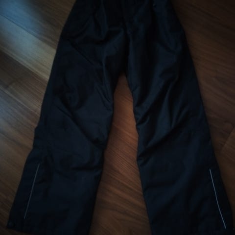 Ehjät, vetoketjut, tarrat, nastat toimii, lahkeissa lumilukot, vyölle renksut.Maastokuvioiset toppahousut ulkoiluun tai lasketteluun.