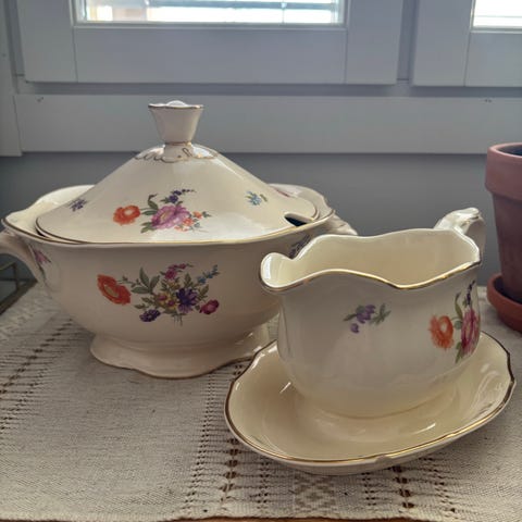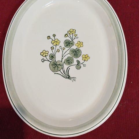 Tämä on Arabia Suvi -sarjan kastikekulho, jonka on suunnitellut Raija Uosikkinen.