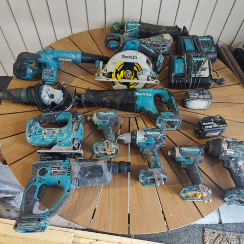 makita DDF486+5AH akku joka toimittanu pääsääntöisesti pilkkihommissa 6" kairan pyörittämistä muutama ruuviki joskus tällä ruuvattu. sivukahvaa en pysty mukana antamaan kun käytän sitä toisessa konneessa.