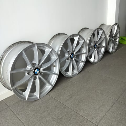 BMW 17" alkuperäiset siistit vanteet ( keskiöt mukaan vaikka ei kuvassa) painetunnistimilla, renkaissa pintaa noin 5 mm .