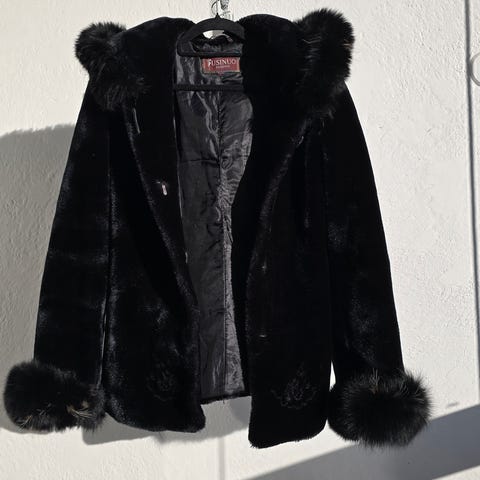 Siisti, aito ja lämmin musta turkistakki. Aikanaan suutarilla lyhennetty lantiomittaiseksi. Nouto Tampereelta tai Helsingistä tai postitus ostajan kuluin.
