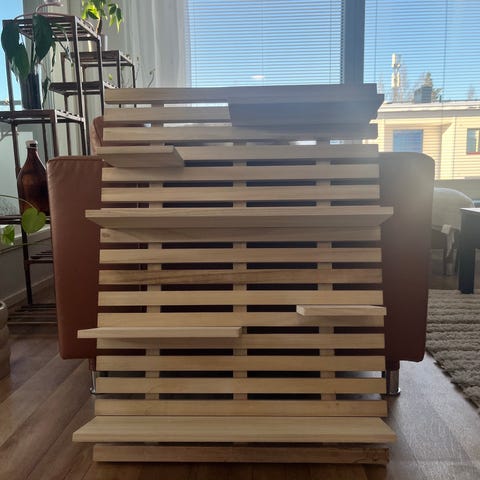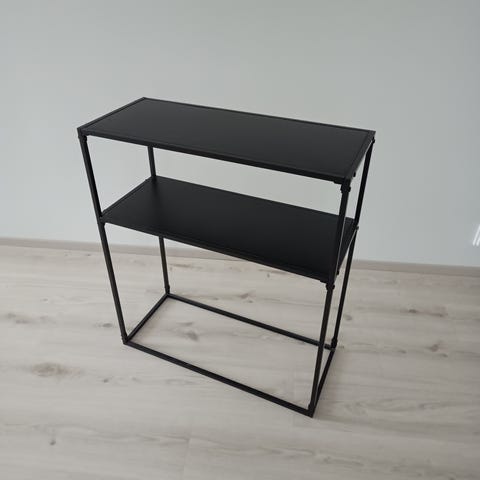 Sivuilta harmaa, edestä valkoinen hyllykkö. Siisti. Myydään muuton alta.