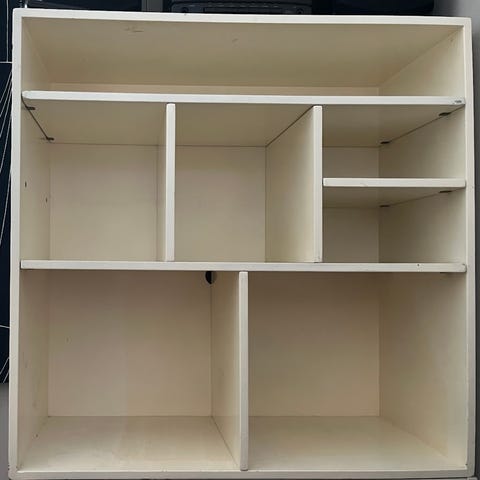 Hyllykkö lastulevystä. Vaatii putsauksen. Nouto Kissanmaalta. Omat kantajat mukaan.