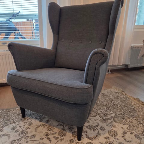 Ikea Strandmon nojatuoli ja rahi