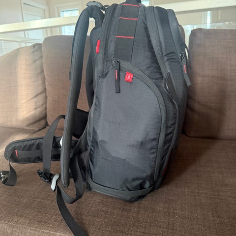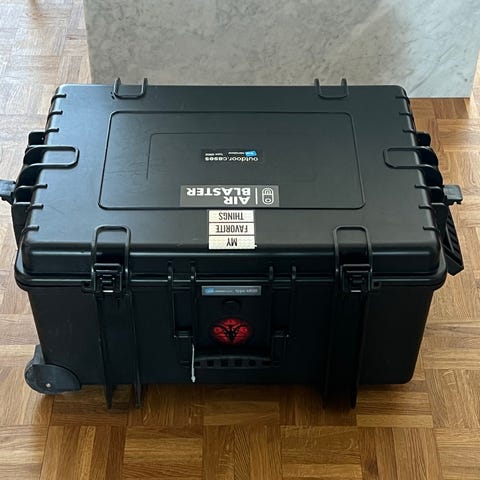 Huippuhyvä Hard case, sisuksilla ja kannen organisointitaskuilla.